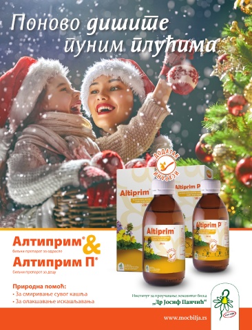 Поново дишите пуним плућима Алтиприм & ® биљни препарат за одрасле Алтиприм П ® биљни препарат за децу Природна помоћ: • За смиривање сувог кашља Институт за проучавање лековитог биља • За олакшавање искашљавања „Др Јосиф Панчић“ www.mocbilja.rs